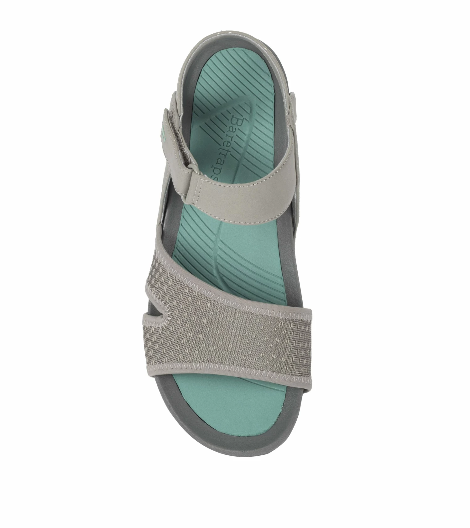 Our Baretraps Annissa womenβs sandal is the perfect style for a busy summer. Designed with our Rebound Technology construction with built-in arch support, an anti-microbial footbed, and a hook and loop closure for a secure fit. The multiple layers of cushioning and a flexible, lightweight outsole help prevent foot fatigue during long days.