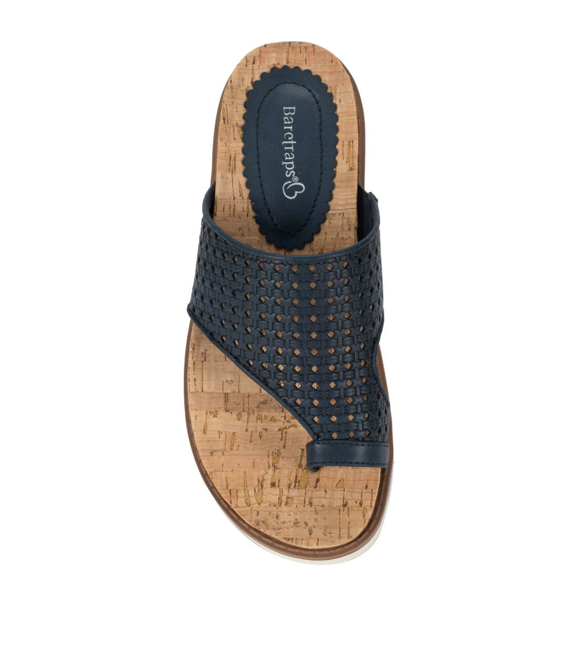 The Baretraps Dallyce womenβs slip-on sandal is ready for the boardwalk. Featuring a fun, summery style that features a laser-etched upper with a toe post and cork footbed made with our comfortable, lightweight construction.