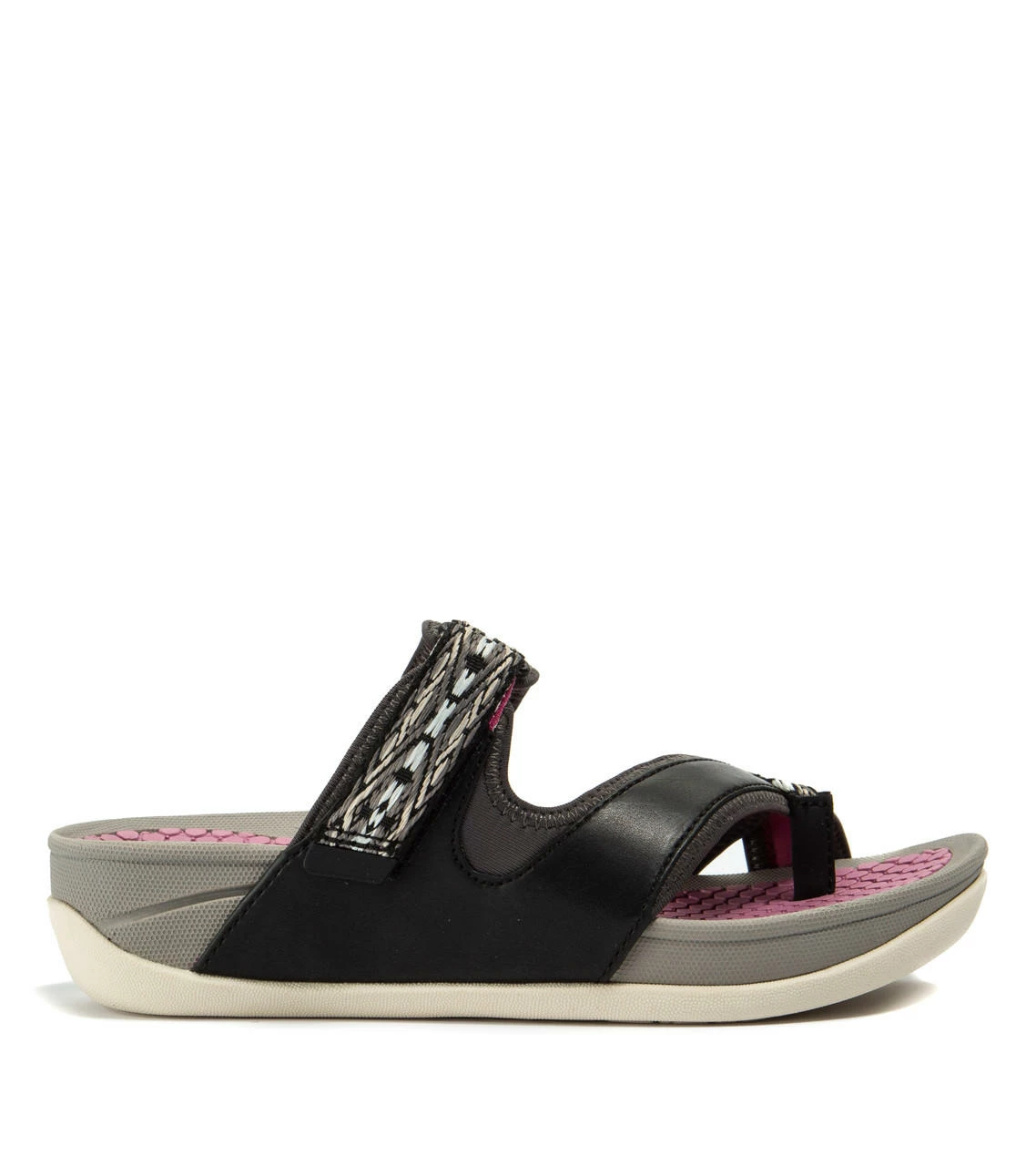 Ready for action! Deserae is a sporty slip-on sandal with all the comfort features you’ve come to expect from a Baretraps sandal. Featuring a hook and loop closure, a hidden wedge, lightweight TPR outsole and our patented Rebound Technology.