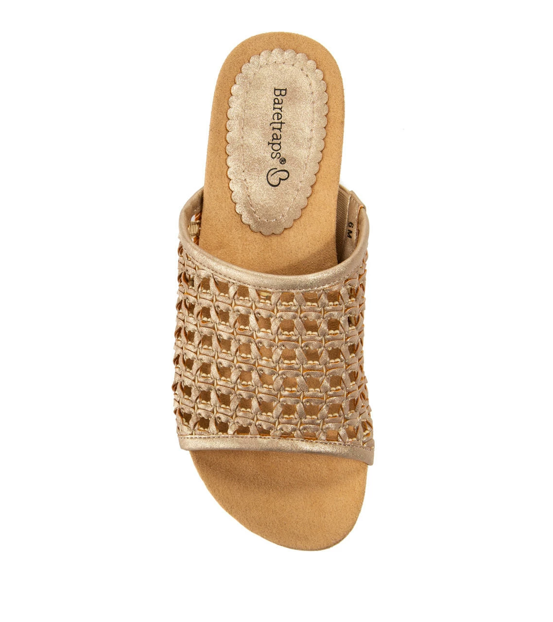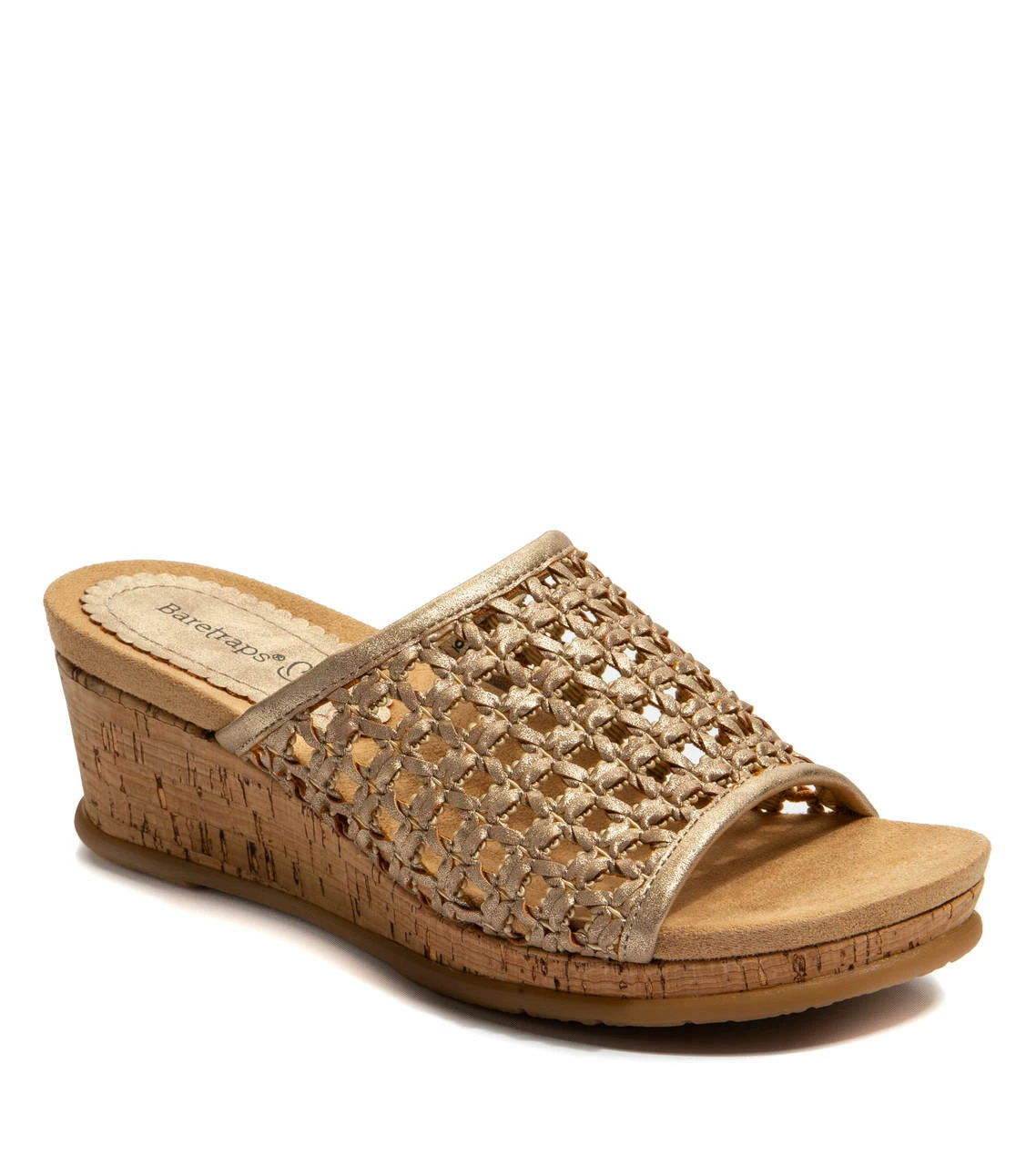 The Baretraps Flossey is a casual yet sassy slide sandal that can pair easily with any summer style. The open-toe detail makes this gorgeous, trendy wedge sandal a staple for the warmer months. The sandal features a stylish 2-inch cork wedge and intricate woven material that’s eye-catching and sure to spice up any outfit. The Flossey sandal is the perfect staple to add to your footwear collection and an essential addition to your summer wardrobe. Pair them with dresses, skirts, or a cute top and shorts for a day of shopping, a night out, or any other summer activity. The comfortable wedge and soft sock lining allow you to walk effortlessly and in style from day to night.