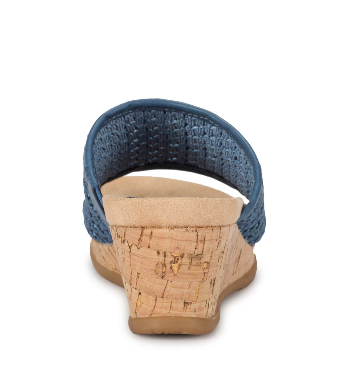 The Baretraps Flossey is a casual yet sassy slide sandal that can pair easily with any summer style. The open-toe detail makes this gorgeous, trendy wedge sandal a staple for the warmer months. The sandal features a stylish 2-inch cork wedge and intricate woven material that’s eye-catching and sure to spice up any outfit. The Flossey sandal is the perfect staple to add to your footwear collection and an essential addition to your summer wardrobe. Pair them with dresses, skirts, or a cute top and shorts for a day of shopping, a night out, or any other summer activity. The comfortable wedge and soft sock lining allow you to walk effortlessly and in style from day to night.