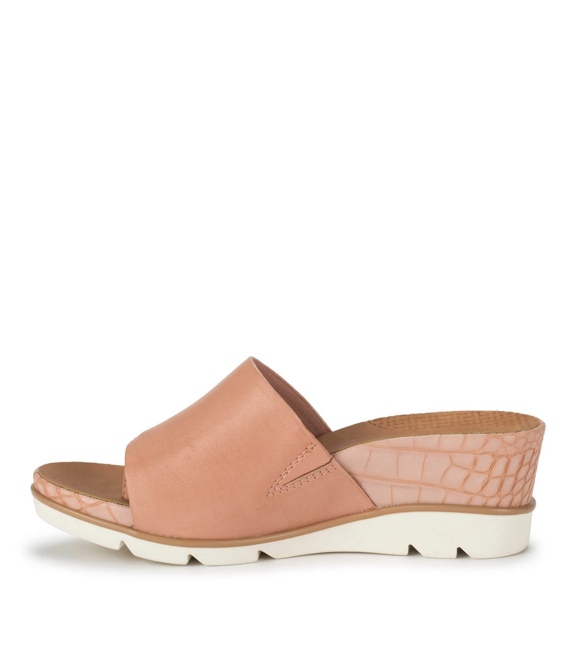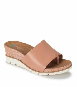 Save yourself a chair by the pool in the Baretraps Leigha womenβs slip-on sandal. Featuring a synthetic upper band with toe post, a stylish hidden wedge and is built upon our Posture Plus+ footbed to provide additional arch and heel support.