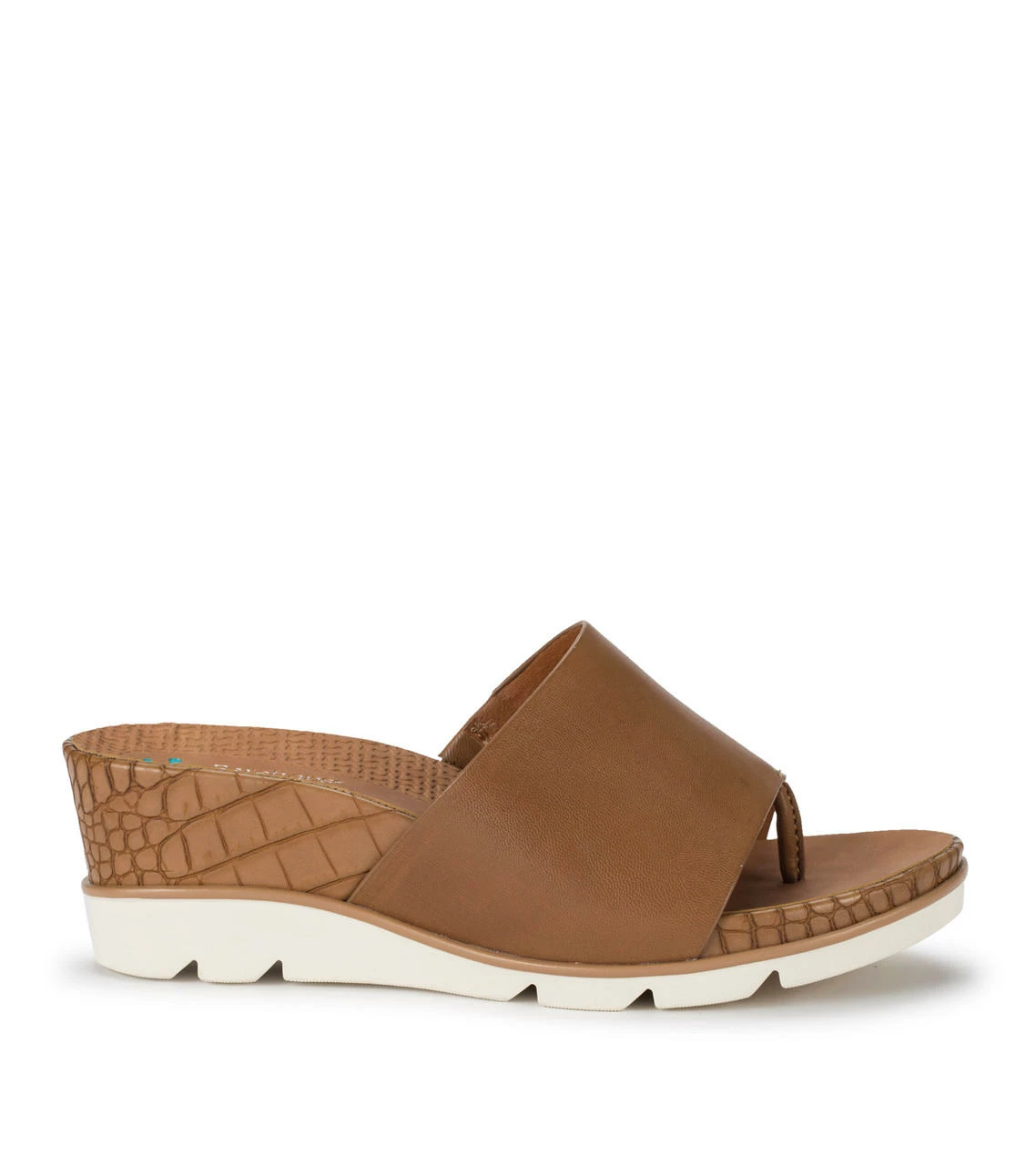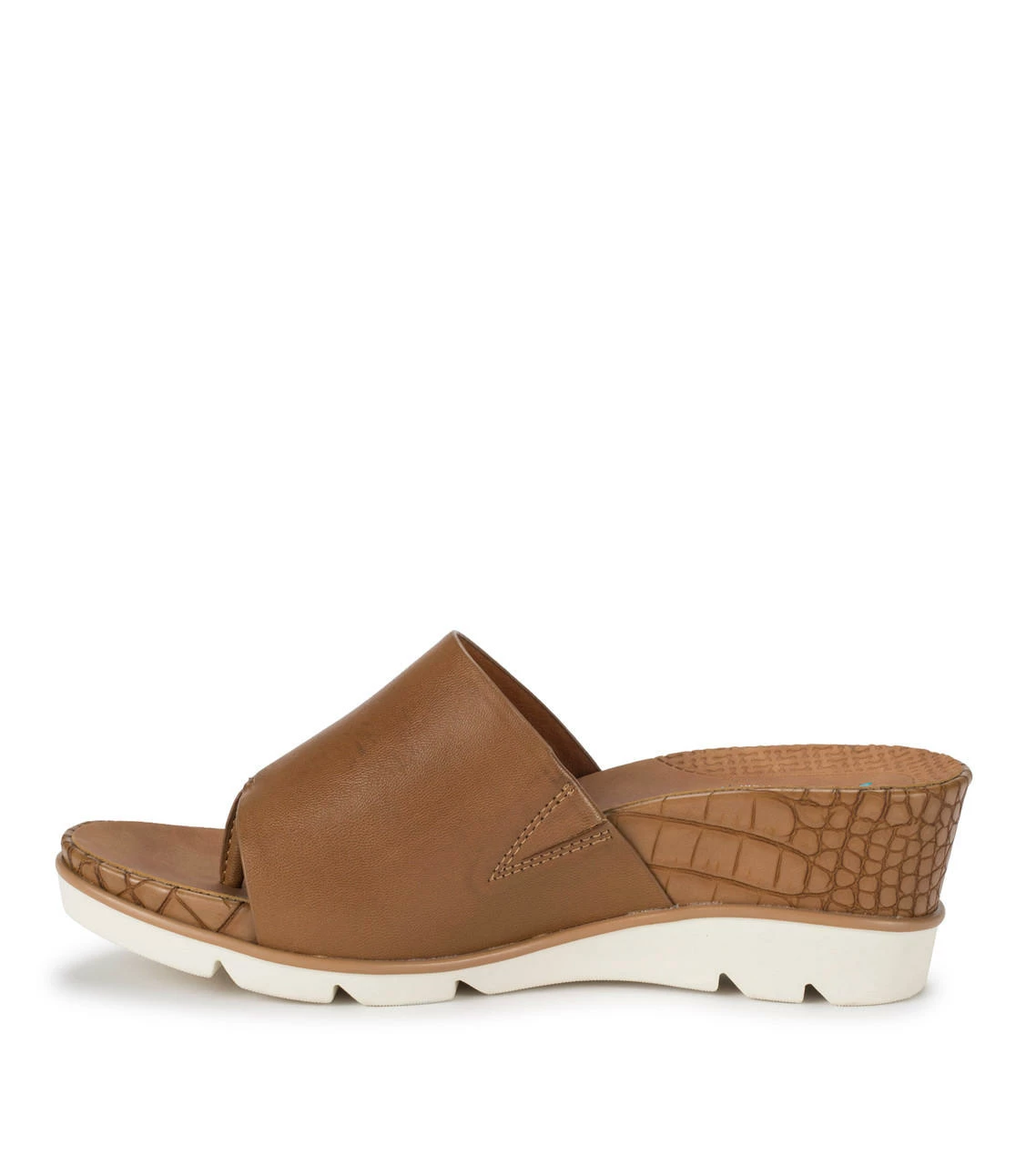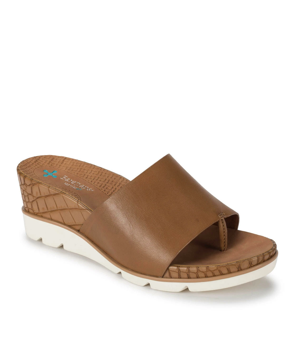 Save yourself a chair by the pool in the Baretraps Leigha womenβs slip-on sandal. Featuring a synthetic upper band with toe post, a stylish hidden wedge and is built upon our Posture Plus+ footbed to provide additional arch and heel support.