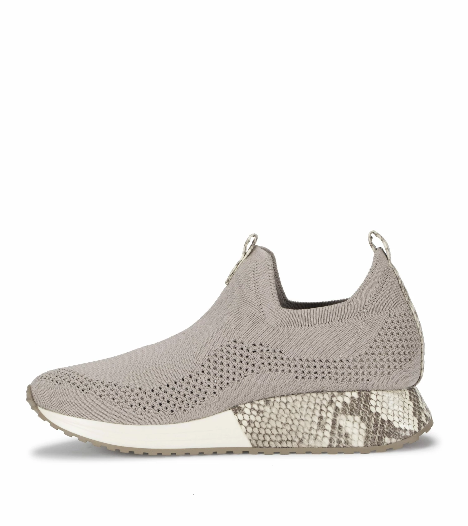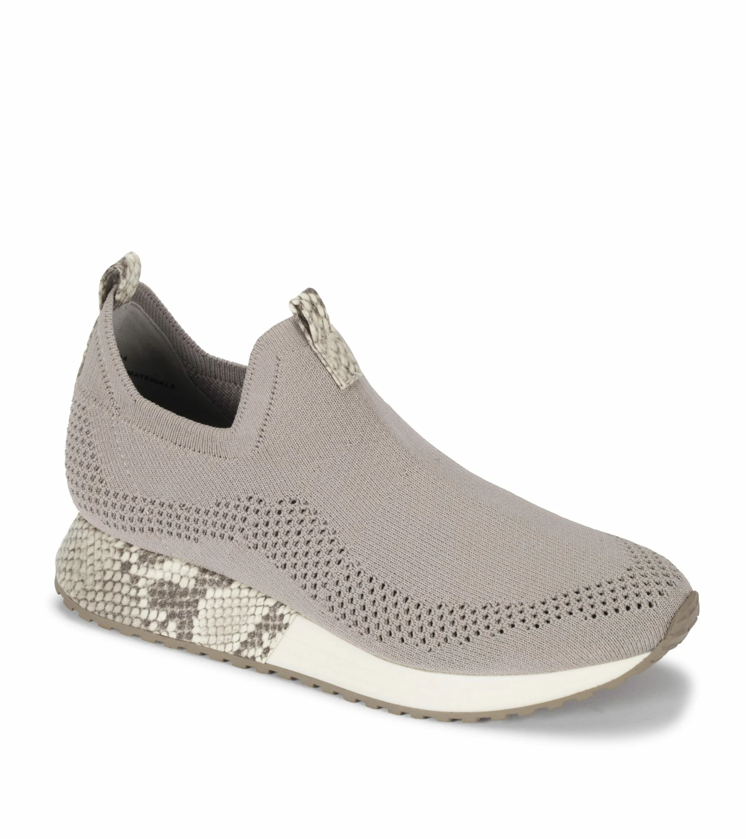 Athletic looks with a ton of style! With a cushioned insole, snake printed heel and adorable knitted uppers our Pringer slip-on sneaker is the perfect blend of casual good looks and sporty styling.