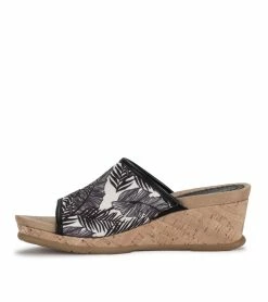 Deals β Baretraps Flossey Wedge Slide π©΄ Sandal (BT27959) Black/white Palm Canvas π